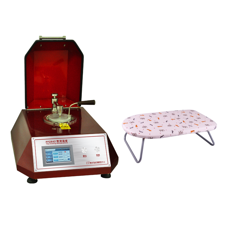 FFZ642熨燙溫度測試儀是考核隔熱手套性能的常用儀器。選用熨燙溫度測試儀對隔熱手套與高溫部件接觸面進行測試,標準BS6526與BS7305規(guī)定了一種隔熱手套熨燙溫度的試驗方法。主要適用于家用隔熱手套。測試方法是在標準大氣下,將鋁塊加熱到測試溫度,移到樣品上放置30s,然后評定樣品的顏色變化、光澤、硬挺度或者其它手感和目測變化。對于顏色稍有變化的樣品可平衡調(diào)濕24h后再評級。